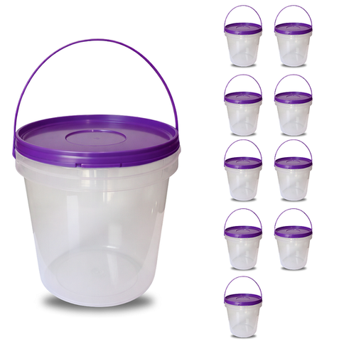 - 09 x Baldes Transparentes com Alça Roxa Plástica – Capacidade 3,2 Litros